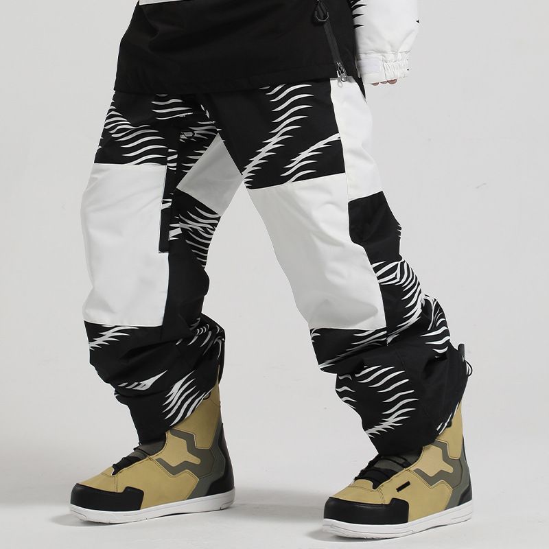 001 New Winter Pants For Women, Snowboard And Skiing, Thickened Windproof Warm Color Block Loose Snow Pants, Men's Ski