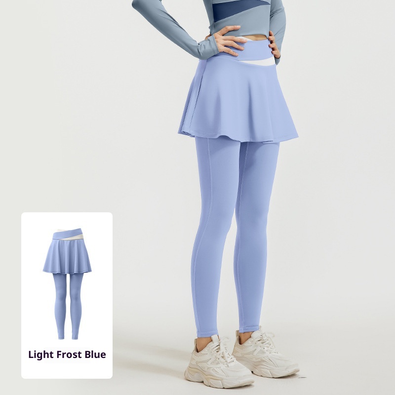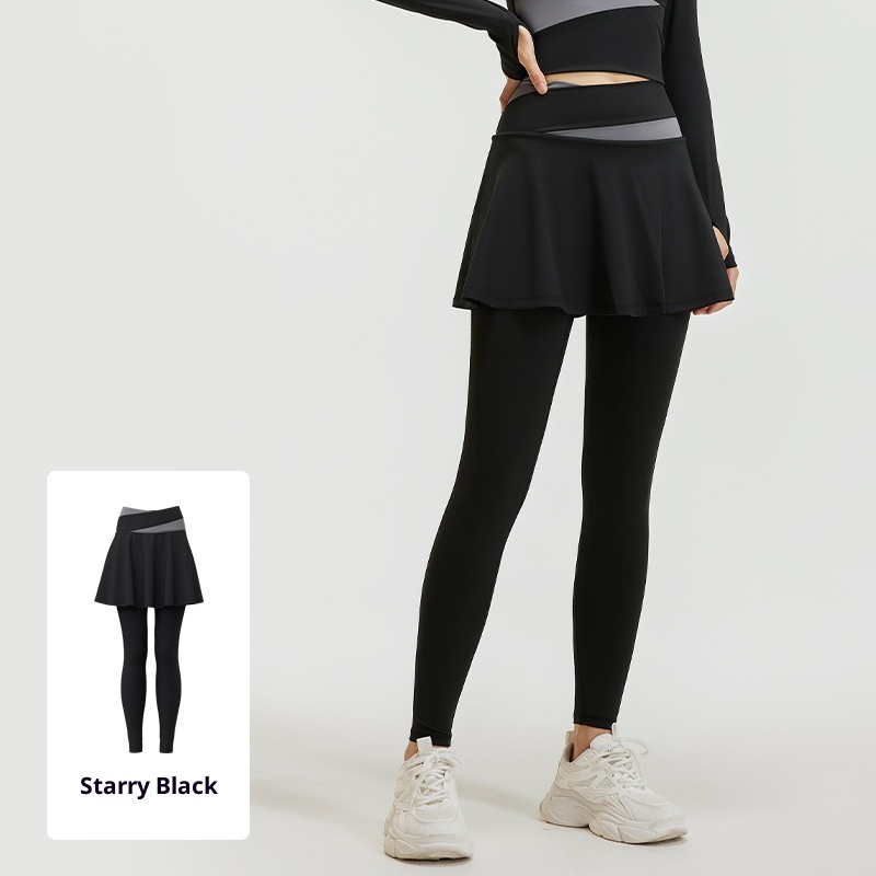 001 Seven Continents Leopard Color Block Two-Piece Skirt High Waist Tummy Control Slimming Fitness Outerwear