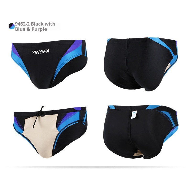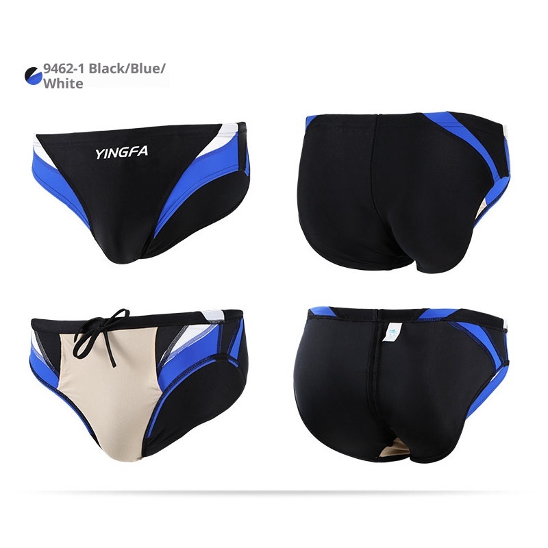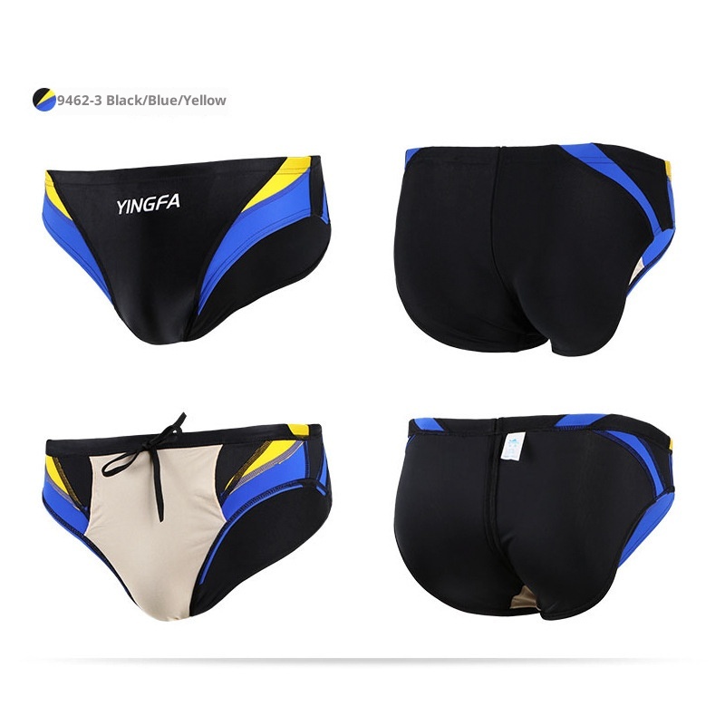 Item Number:Yingfa 9462,Product Source Category:In Stock,Inventory Type:Complete order,Brand:Yingfa,Is it for export?:No,Suitable age group:Adult,Applicable Gender:Male,Origin:Guangdong,Pattern:Color Blocking,Fabric Name:Polyester,Fabric Composition:Polyester Fiber Dacron,Fabric Composition Content:80,Gram weight:200,Lining Material Name:Polyester,Lining Composition:Polyester Fiber Dacron,Lining Material Composition Content:Polyester Spandex,Applicable Scenarios:Fitness and Bodybuilding, Swimming and Water Sports,Color:Black with Blue and White 9462-1, Black with Blue and Purple 9462-2, Black with Blue and Yellow 9462-3, Black with Orange and Gray 9462-4,Size:XS, S, M, L, XL, 2XL, 3XL,Is it exclusively for cross-border export supply?:No,Patent Type:None,Foreign Trade Export Certification:None,Design:Triangle briefs, Boxer shorts