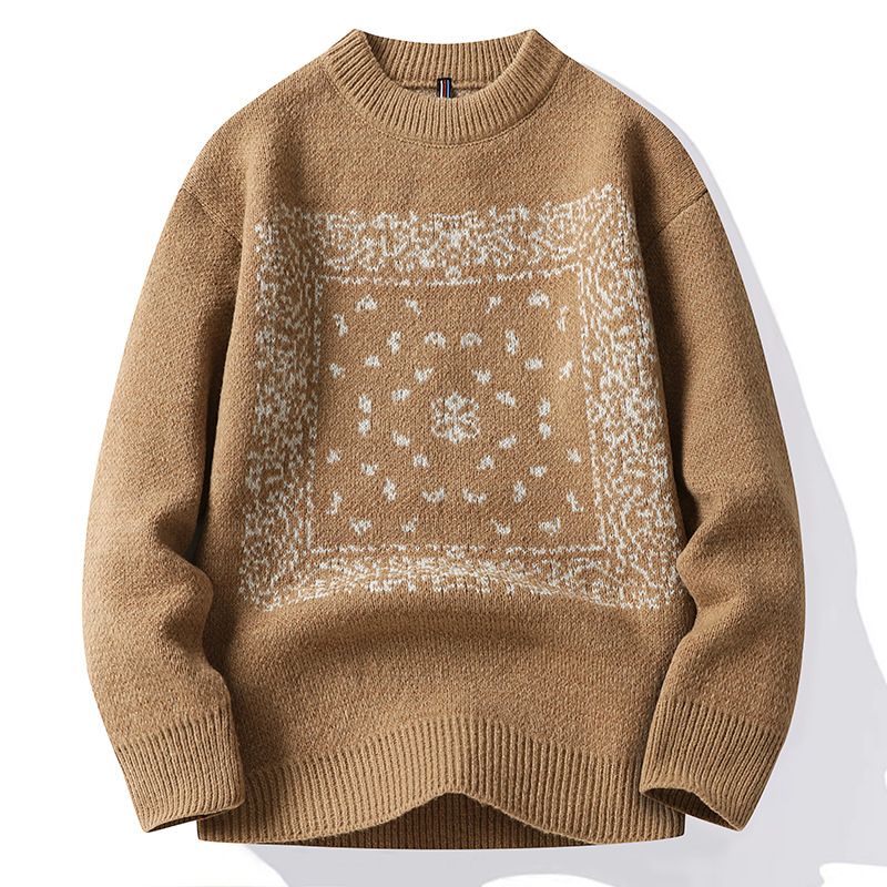 2022 New Round Neck Sweater Men's Loose Print Autumn Thickened Knitted Trendy Small Fresh Linen for Men