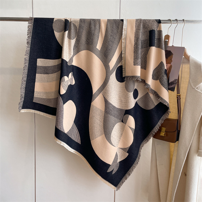 2023 Autumn/Winter New Square Scarf Art Style Imitation Cashmere Scarf Women's Warm Air Conditioning Room West Blanket Shawl