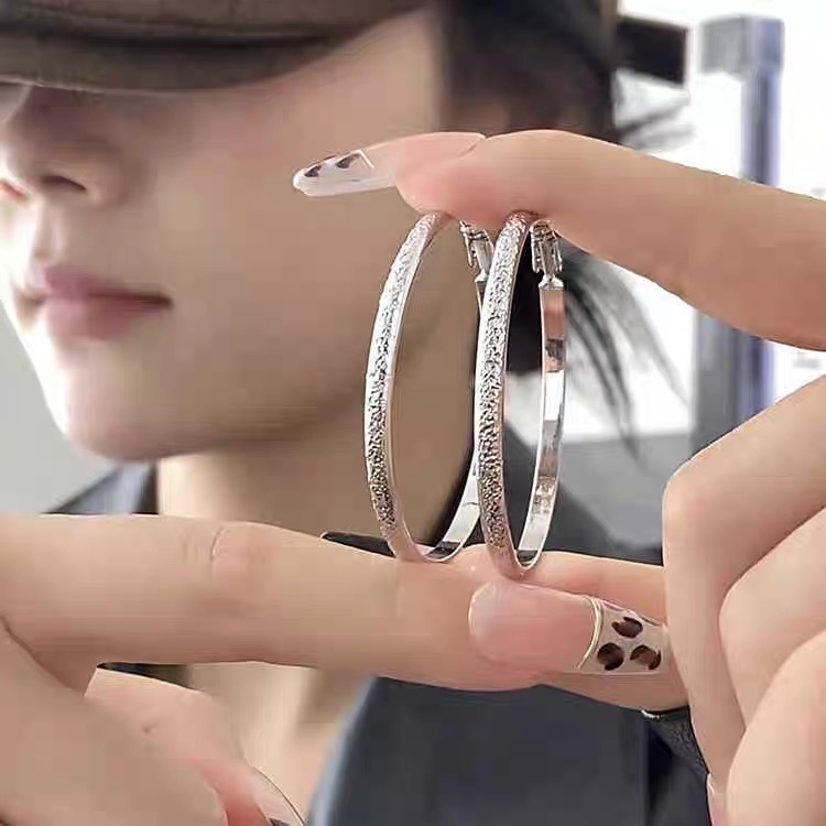 2024 New Silver Starry Sky Circle Earrings Fashionable, Simple, Versatile, Square Round Face, Slimming Earrings
