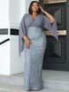 2025 Cross border new sequins temperament commuting solid color mid waist red deep V temperament solid color banquet long skirt evening dress