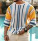 2025 Autumn Loose Round Neck Mid Sleeve Sweater Men's Large Striped Knitted Sweater