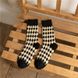 2 db őszi-téli vastagított és meleg gyapjúból készült, divatos, British Academy stílusú, gyémántkockás női zokni
