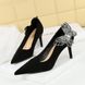Popular elements: Wind high heels, suede pointed, fine heels, side rhinestone bows, banquet women's shoes