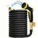 A Retractable Garden Hose Set With A High-pressure Water Gun Nozzle And US Standard 3/4-inch Connectors, Perfect For Outdoor Watering And Gardening.
