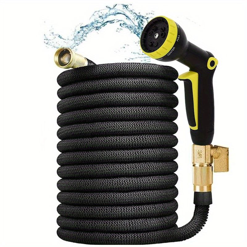 A retractable garden hose set with a high-pressure water gun nozzle and US standard 3/4-inch connectors, perfect for outdoor watering and gardening.