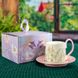 Bellflower High-Handle Coffee Cup & Saucer Set – Cottagecore Ceramic Tea Set (Elegant Gift Box, Floral Embossed, 230ml)