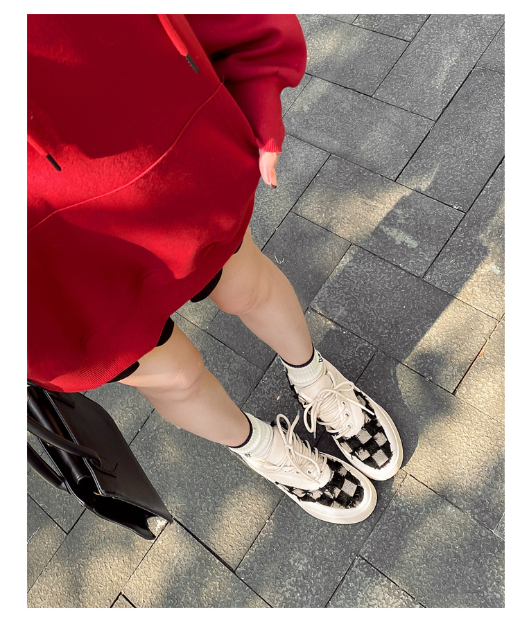 Blogger's Same Style Fashionable and Versatile Thick Sole Casual Board Size, Heightened Lace up Small White Shoes,