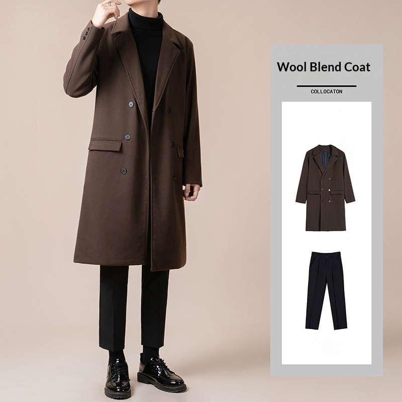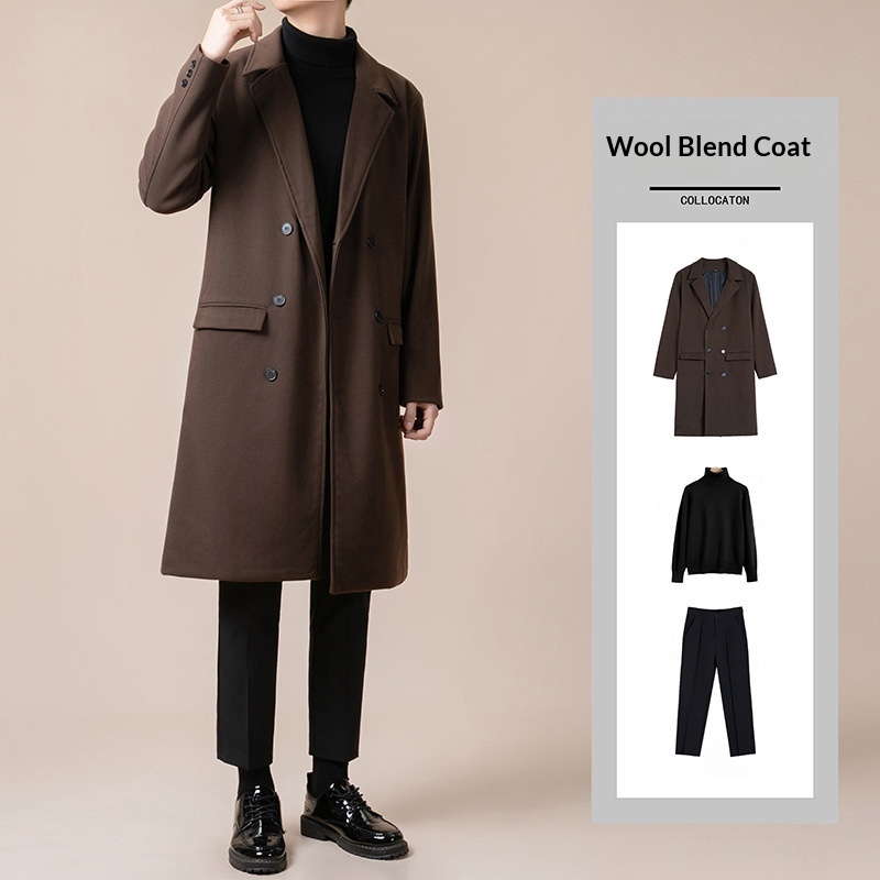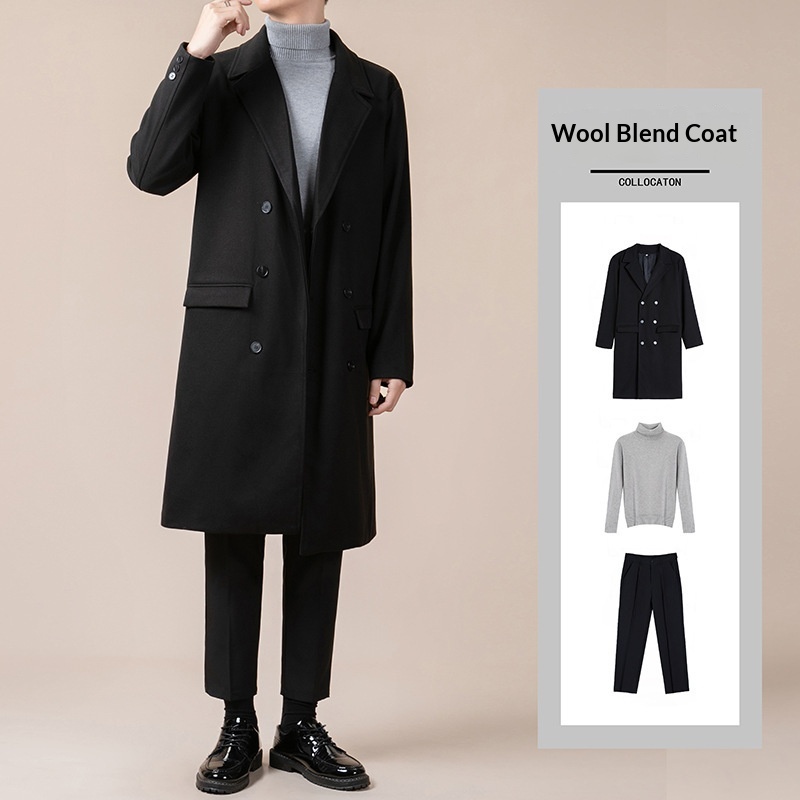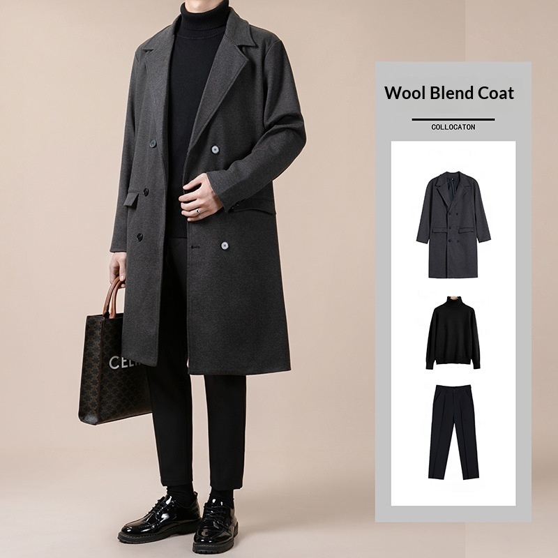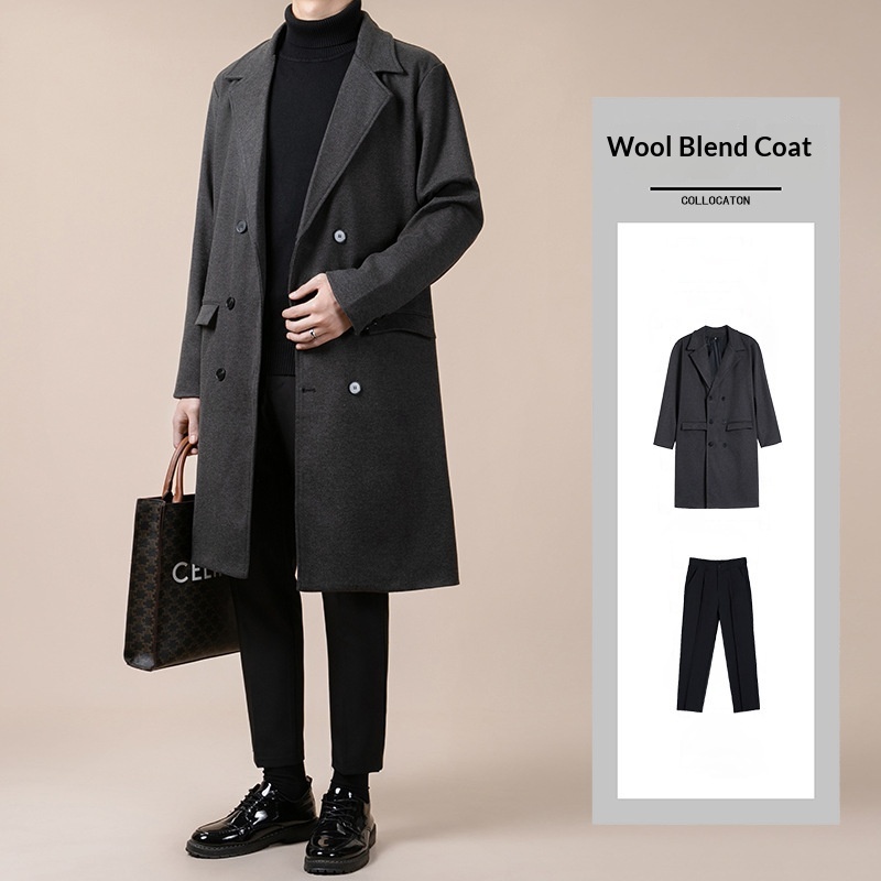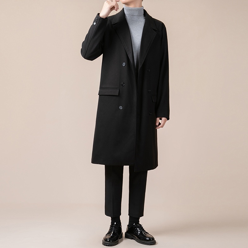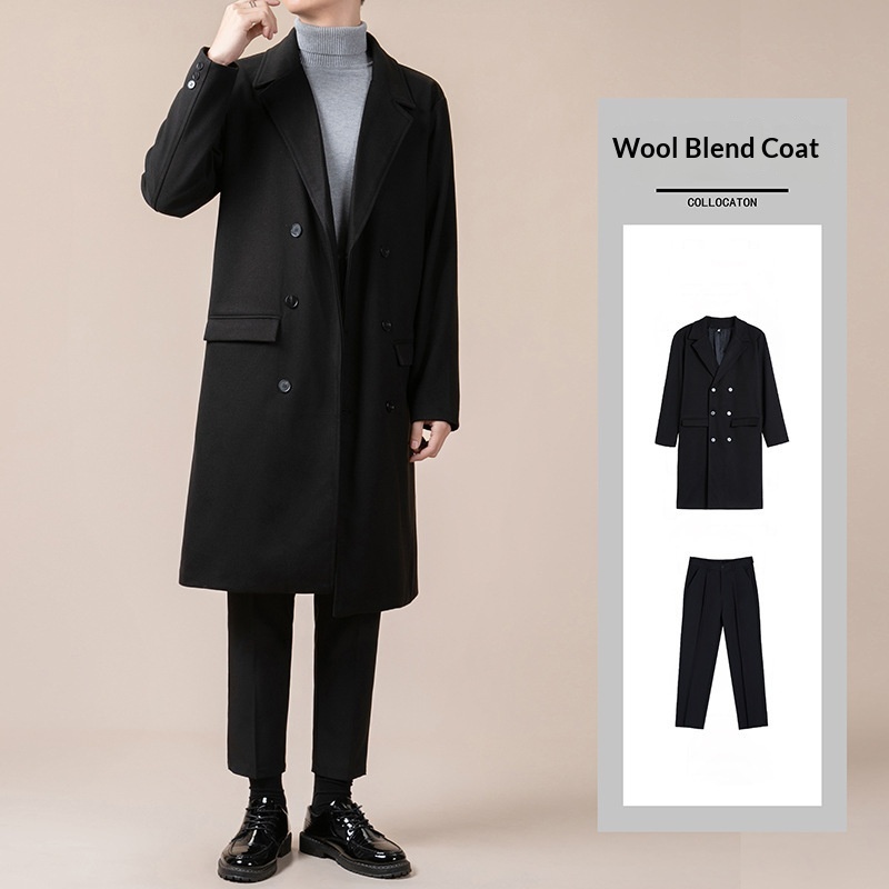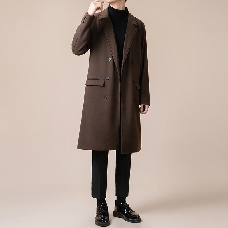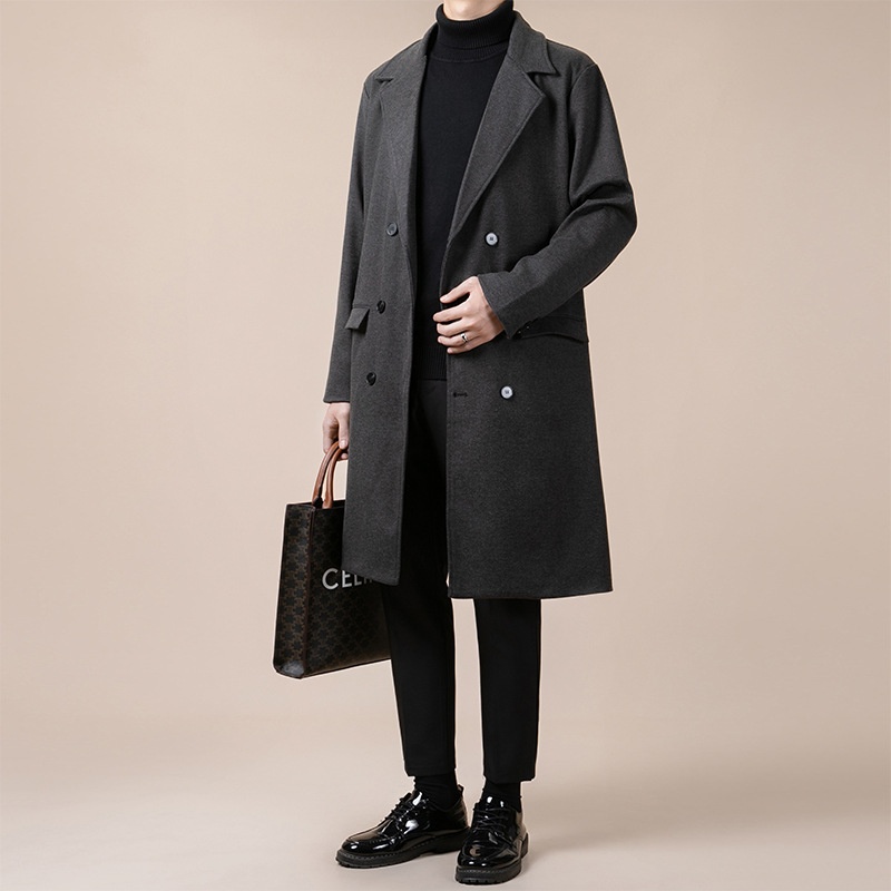 boy Boy Boy Thickened Overcoat Men's Winter Style Mid-Length Korean Version Double-Breasted Woolen Trench Coat