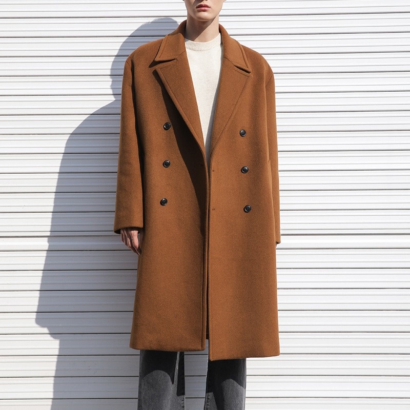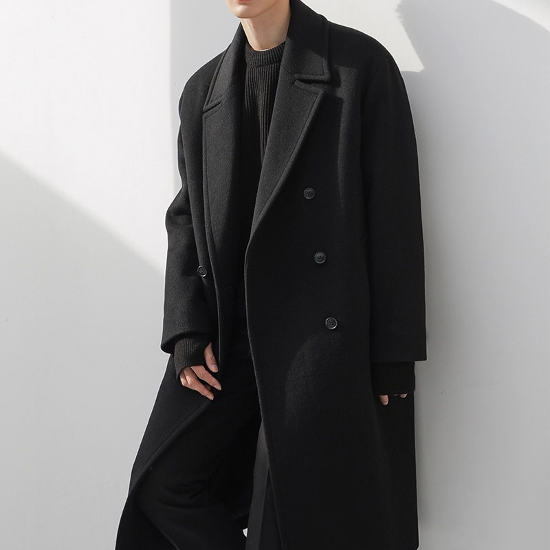 boy Boy Boy Trench Double-Breasted Black Mid-Length Coat Men's Autumn Winter Woolen Jacket