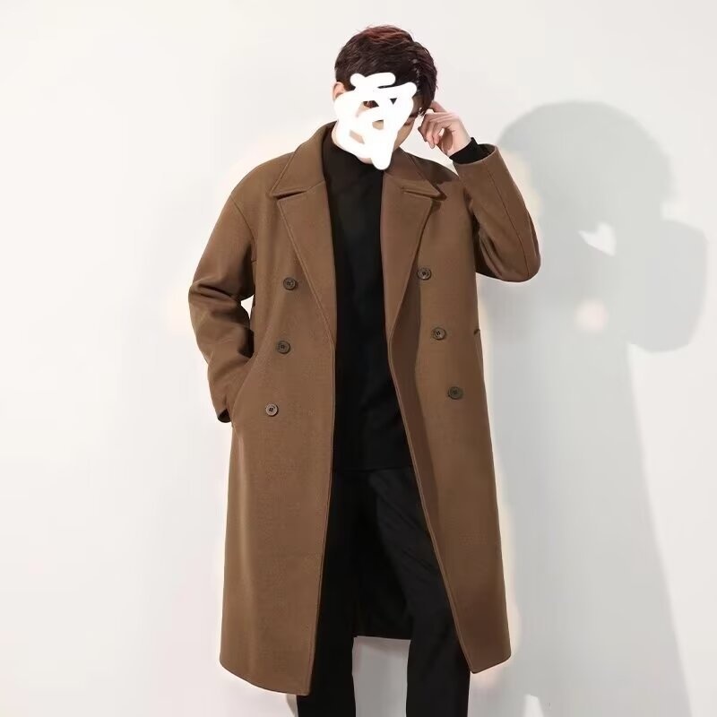 boy Boy Trench Double-Breasted Black Mid-Length Coat Men's Autumn Winter Woolen Jacket
