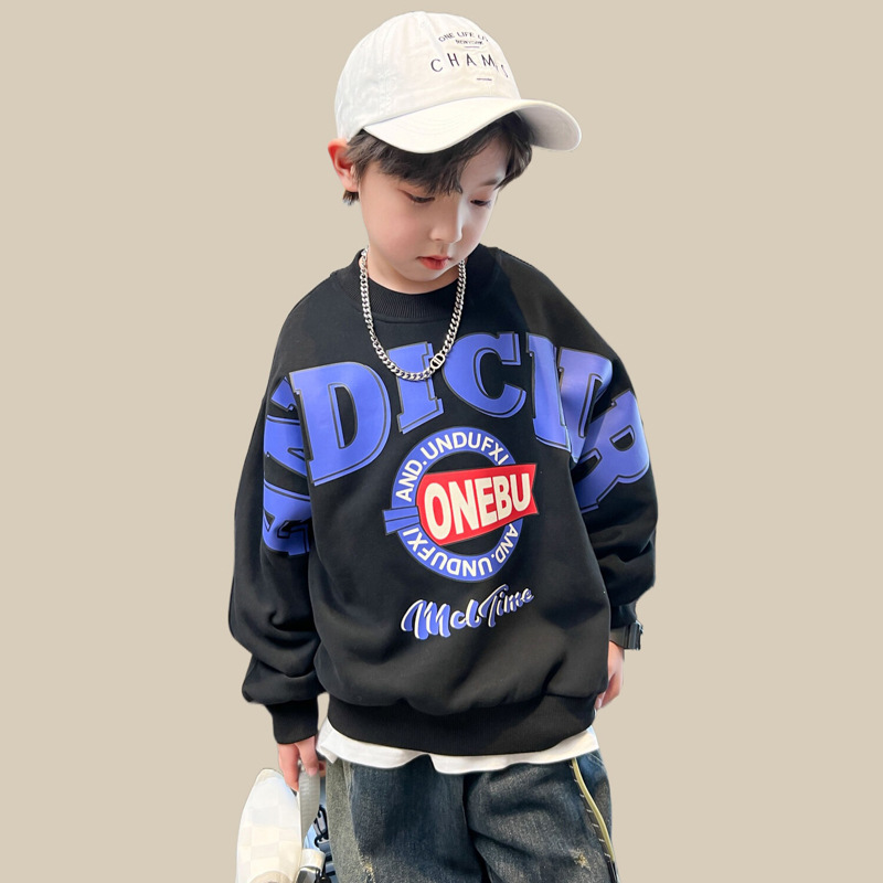 Boys' trendy brand hoodie for spring and autumn 2024, new children's spring outfit, explosive street hooligan and handsome top, mid to large children's autumn clothes