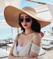 Wholesale fashion summer sun protection wide brim straw hat with edge ribbon monochrome ladies travel vacation sunshade beach hat