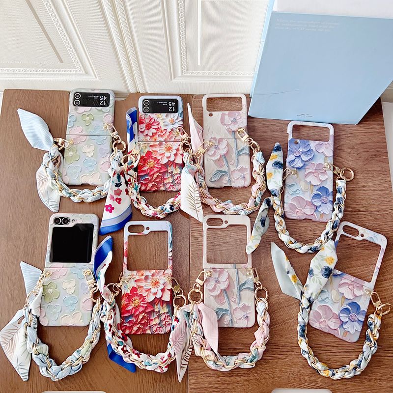 Unique Fashion Elegant Relief Flower Silk Strap Wrist Phone Case Cover For Samsung Galaxy Z Flip 3 4 5 6 7 F7220
