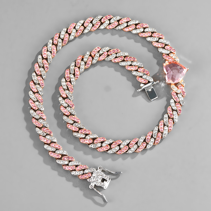 Item/Product Name: Two tone watercolor diamond 9mm Cuban chain, men's and women's fashionable and personalized hip-hop trendy brand