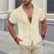 Eladó nyári hajtókás, egyszínű, rövid ujjú, gombos férfi üreges ing