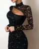 Európai és amerikai csipke üreges divatruha villogó kiemelésekkel kötött anyagból karcsúsított csípőszoknya