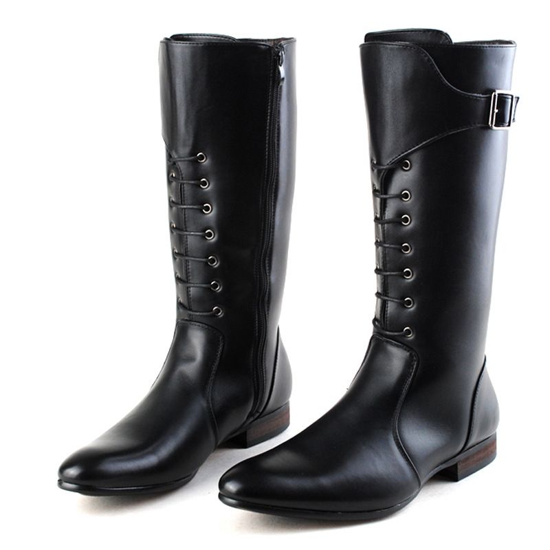 European Warm Series Leather Pointed Toe High Cowboy Long British Trendy Stage Korean Style Men's Martin Boots