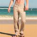Férfi ruházat Férfi lenvászon strandnadrág egyenes szárú, egyszínű, kényelmes kültéri, hétköznapi nadrág