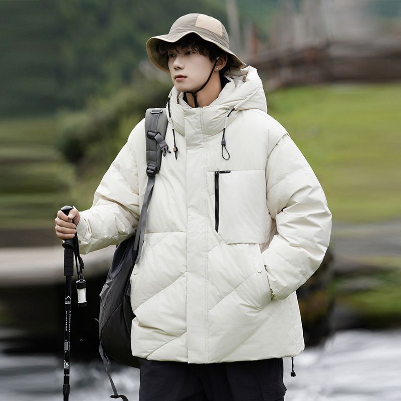 Winter new men's down jacket, mountain style outdoor couple, detachable sleeves, simple jacket, two-piece down vest outfit