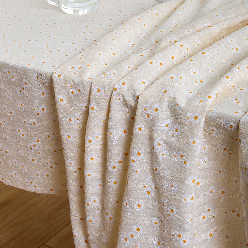 Floral Cotton-Linen Fringe Rectangular Dust Cover Home Tablecloth Daisy Coffee Table Cover