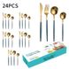 Étkészlet-készlet, rozsdamentes acélból készült étkészlet, 24 darabos portugál kés-villa-kanál készlet, 6 személyes étkészlet