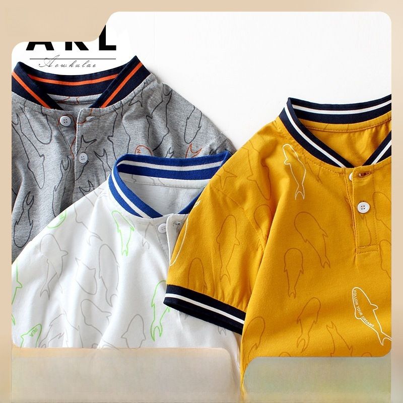 Gyerek póló nyári új koreai V-nyakú rövid ujjú póló nagy gyerek nyitott mellkasú rövid ujjú póló fiúknak rövid ujjú nagykereskedelem