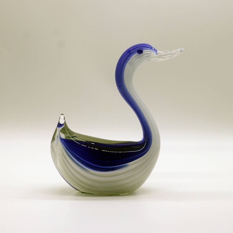 Handcrafted Art Glass Swan Figurine, Blue And White, Decorative Crystal Sculpture, Curved Neck Design