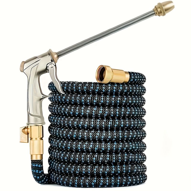High-pressure retractable car wash hose with adjustable nozzle - durable silicone flexible tube, ANSI threaded connector, portable and lightweight design, suitable for car, patio, and garden use.