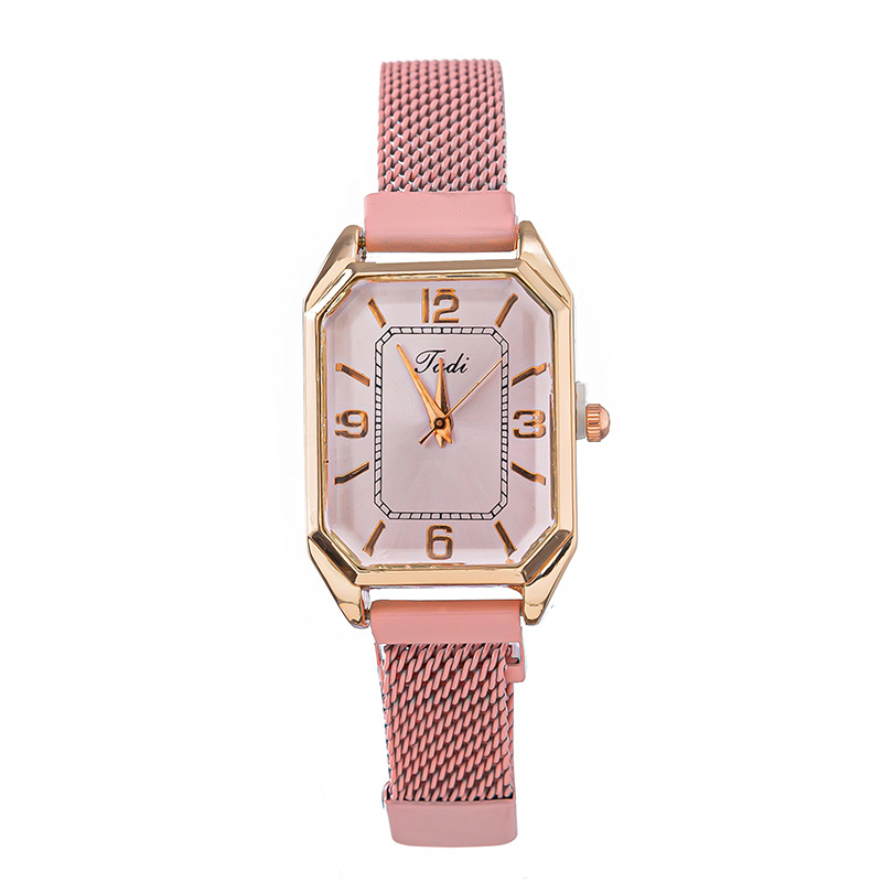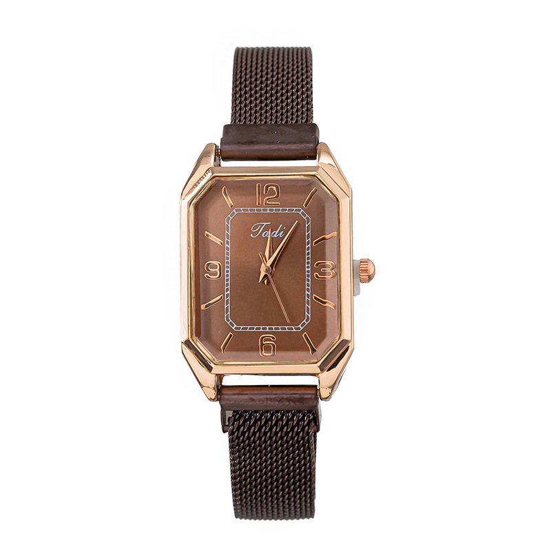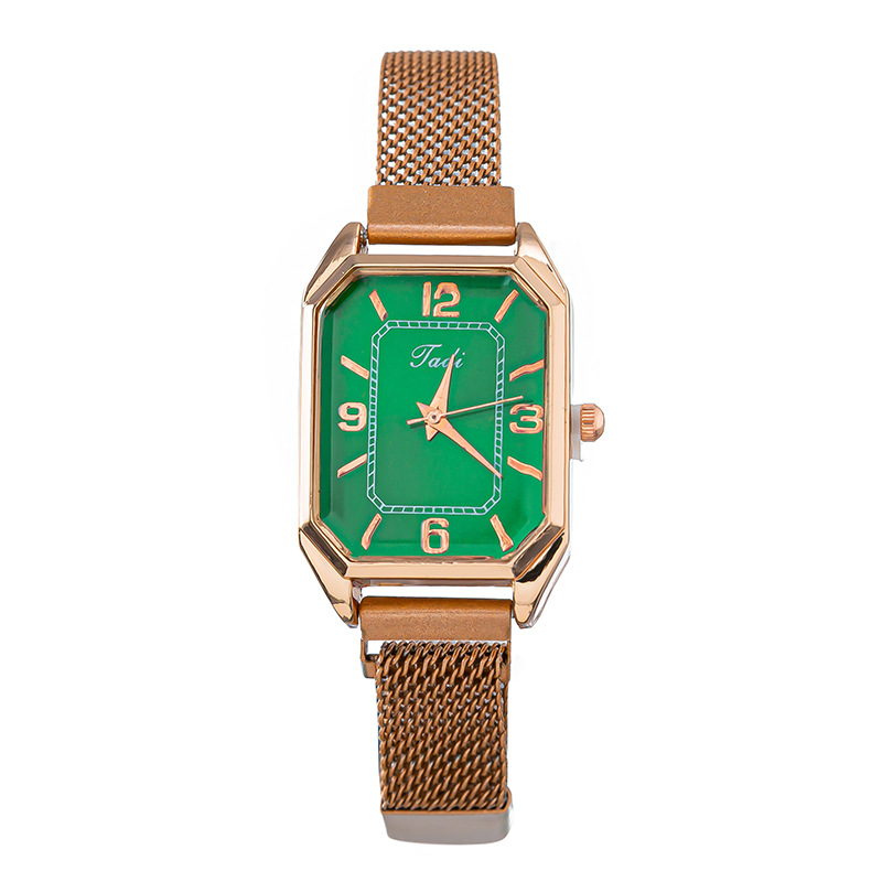 Új, divatos internetes híresség mágneses csattal és divatos finom hálós szíjjal ellátott, négyzet alakú kvarc női karóra