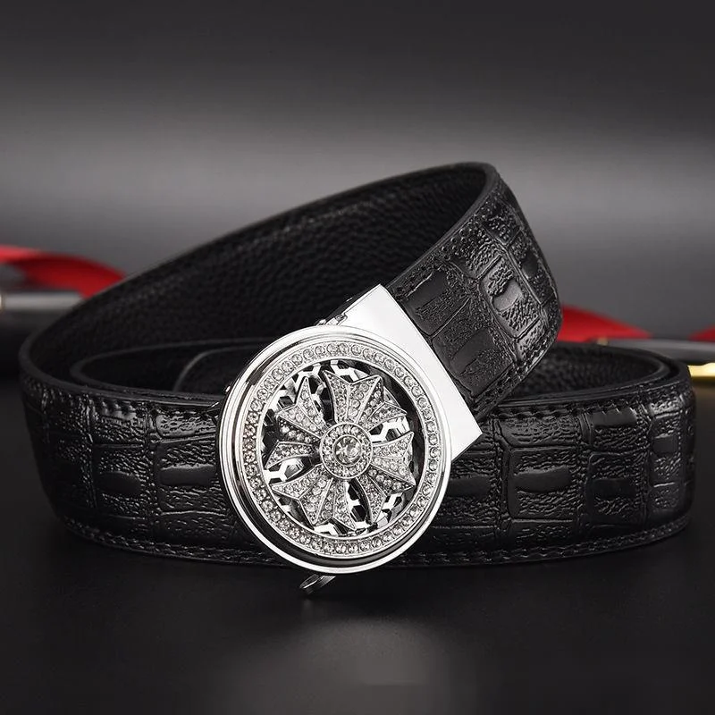 Új Hot Selling öv automatikus csattal férfiaknak, gyémántszeges csatfejjel, üzleti alkalmi öv férfiaknak