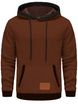 Új, menő férfi kapucnis pulóver, színes blokkokkal, sapkacímkével és menetes húzózsinórral.