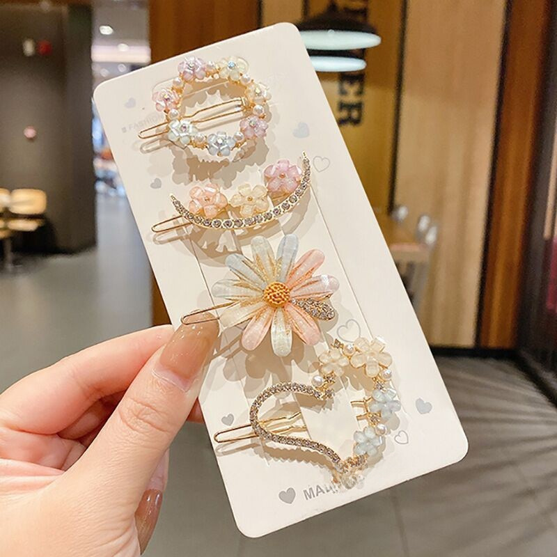 Fresh and Sweet Style:This new set of rhinestone pearl hair clips features a fresh and sweet style, perfect for young girls who love a touch of innocence in their accessories. Versatile Hair Accessories:These hair clips are versatile hair accessories that can be used to create various hairstyles, making them ideal for everyday wear or special occasions. Trendy Children's Headwear:As trendy children's headwear, these hair clips are popular among kids, adding a fun and fashionable touch to their outfits. Quality Material:Made with quality materials, these hair clips are durable and designed to last, providing long-term use for your child's hair accessory needs. Easy to Use:These hair clips are easy to use, making them suitable for children who may find it difficult to handle larger hair clips. Cute and Chic:With their rhinestone pearl design, these hair clips are not only cute but also chic, making them a great addition to any child's wardrobe.