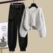 Plus Size Women's Autumn Outfit Set – Trendy Sweatshirt & Slim-Fit Cargo Pants (Gray/Black/White/Light Blue/Beige, M-4XL)