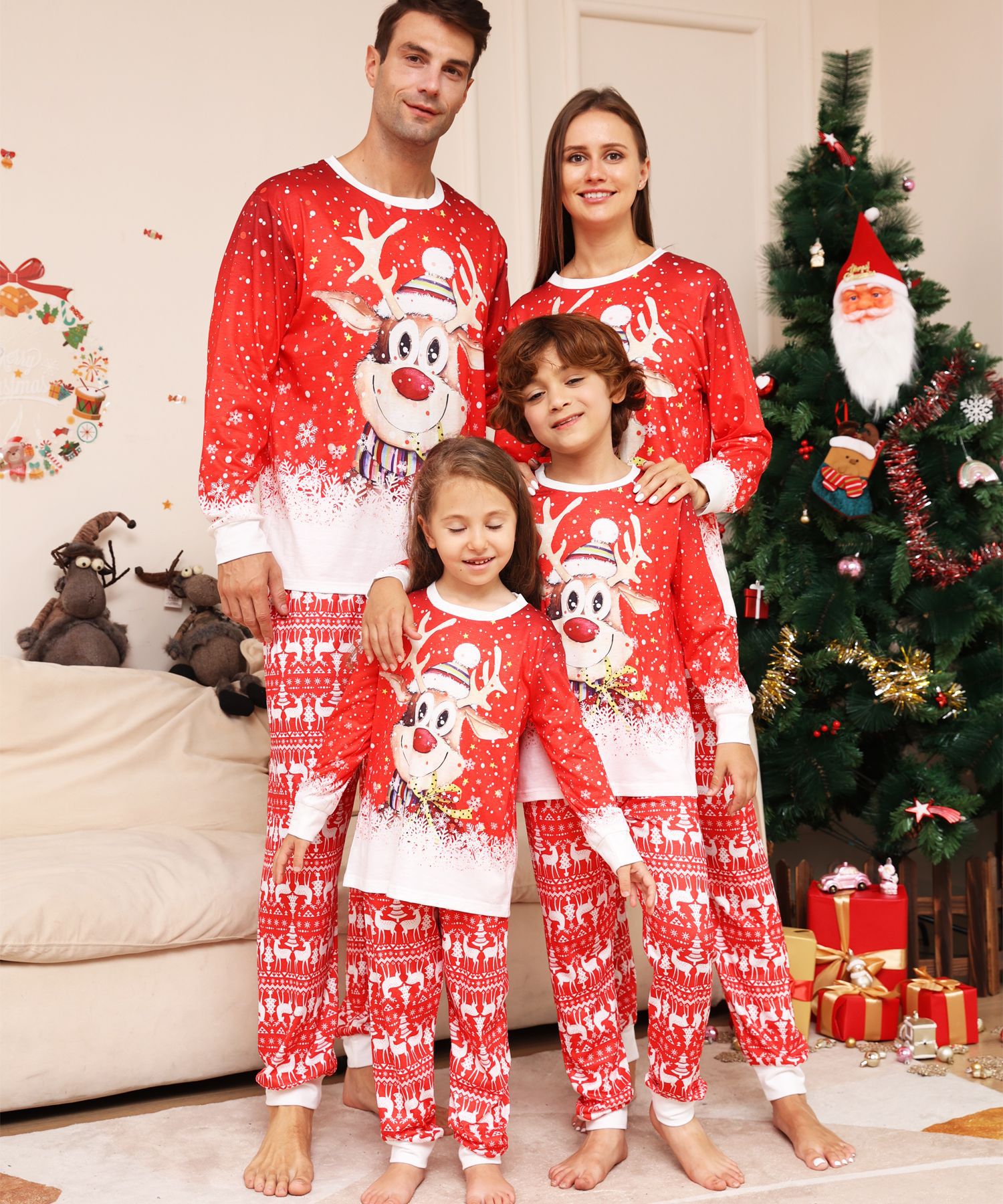 Karácsonyi rajzfilm hópehely szarvas karácsonyi családi ruha mintás otthoni pizsama