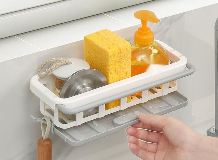 Kitchen Storage No-Drill Wall-Mounted Miscellaneous Organizer Multi-Functional Draining Spice Rack Sink Artifact