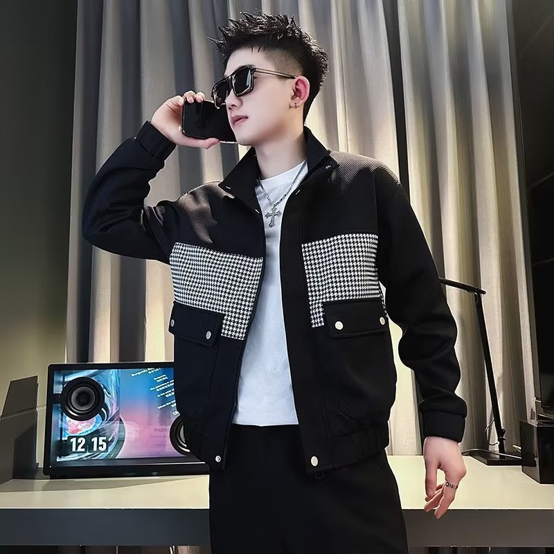 Kiváló minőségű patchwork férfiruha tavaszi-őszi viseletre, divatos és mutatós, 2023-as új férfi lezser dzseki