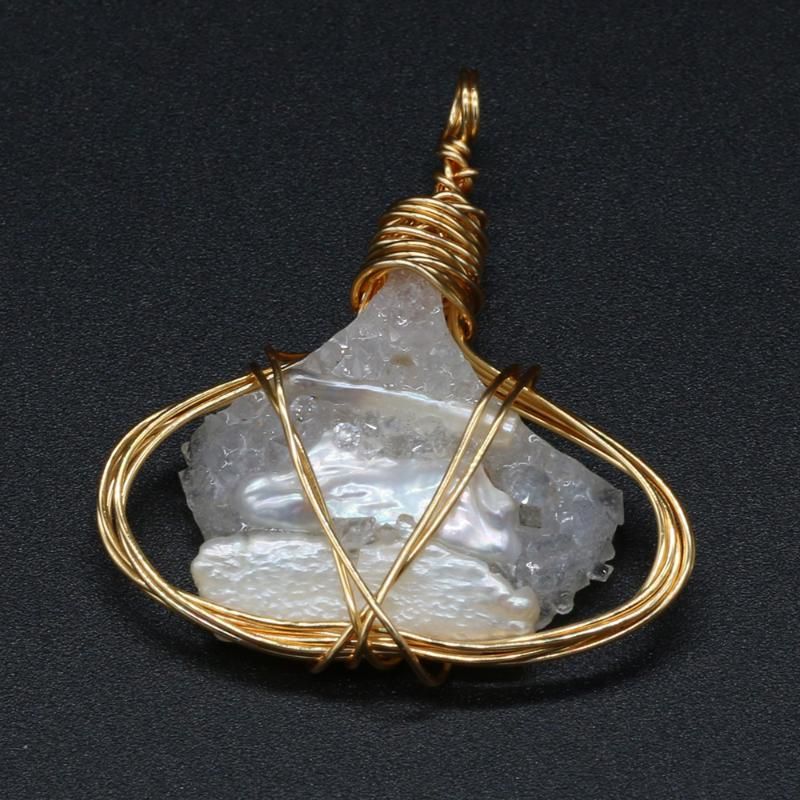 Natural Stone Druzy Pendants Reiki Heal Golden Color Wire Wrap Freshwater Pearls for Jewelry Making Necklace Earring Supplies