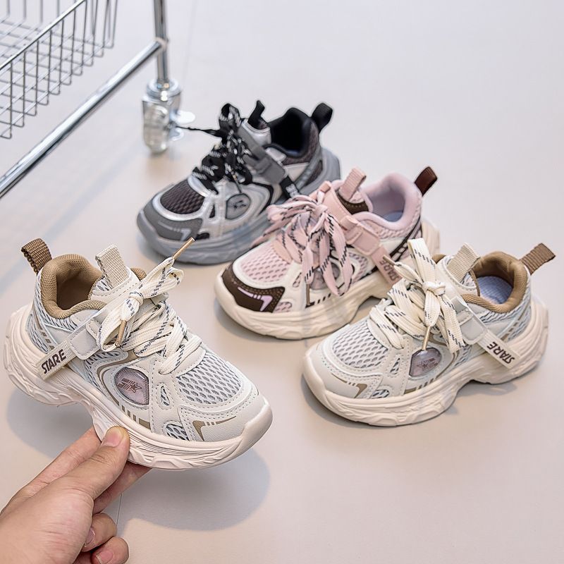 Korean Version Lightweight Mesh Children's Dad Design Sense Running 2025 Spring Autumn Boys And Girls Sports Shoes_voghion.com