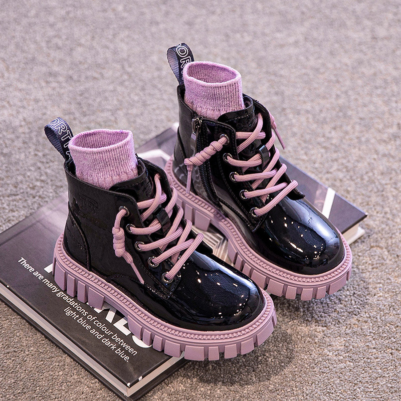Lány Martin csizma 2023 Tavaszi és őszi új fiú két pamut téli cipő bőr csizma plusz polár rövid csizma