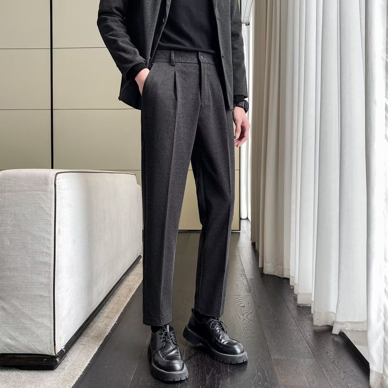 Lightly cooked trousers with Martin boots, thick woolen trousers in autumn and winter, casual nine-point trousers, men's trousers and slim feet