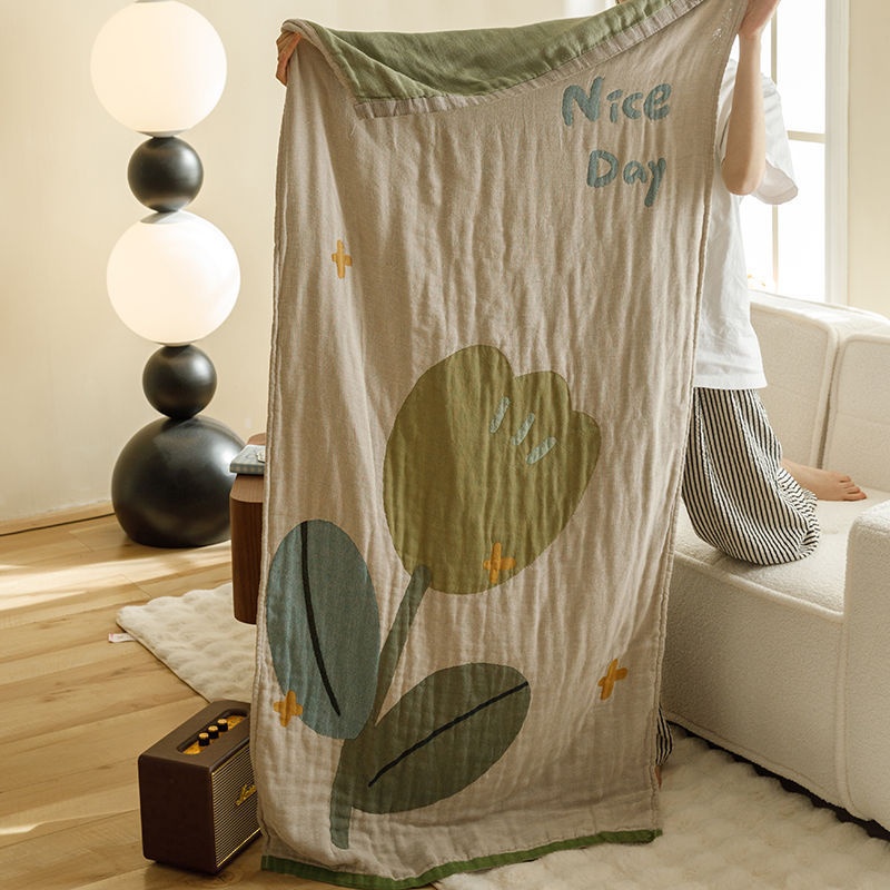 Lillian Japanese Style Cartoon Pure Four-Layer Gauze Cotton Linen Absorbent Sweat-Absorbing Quick-Dry Large Bath Towel Thin