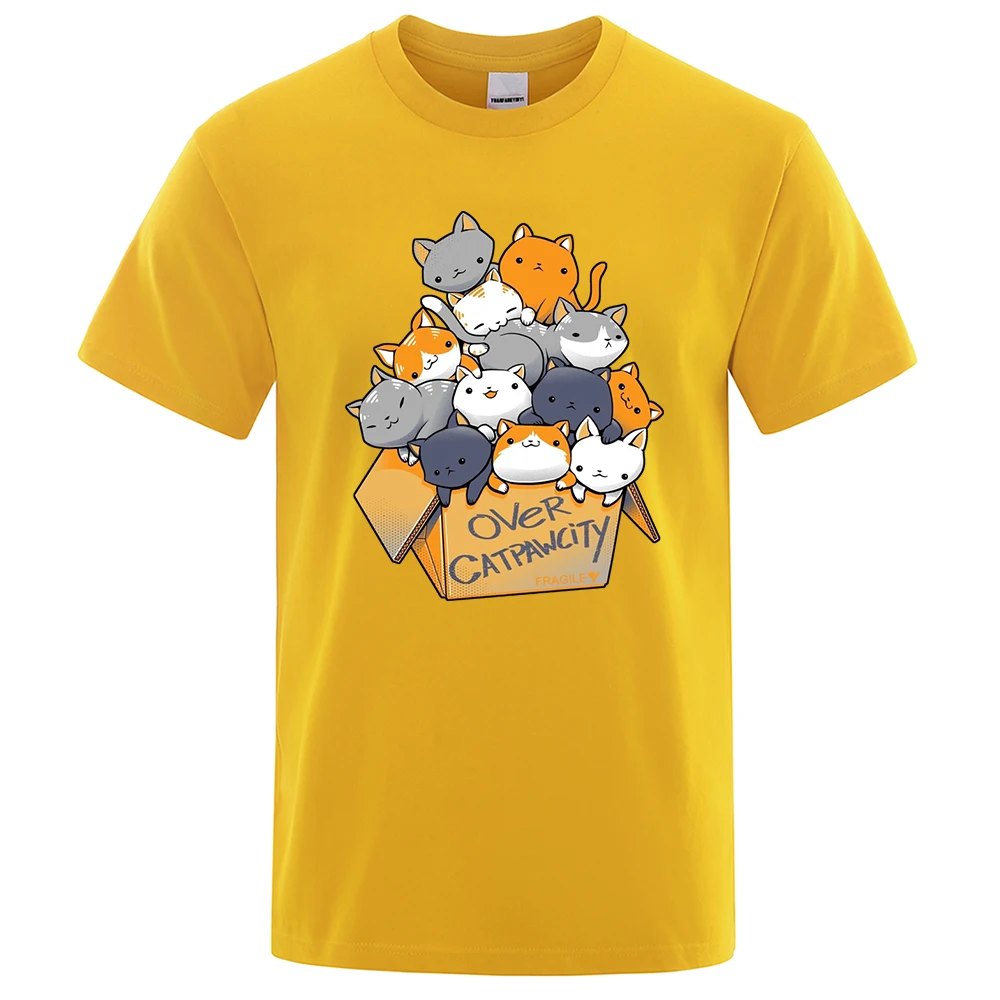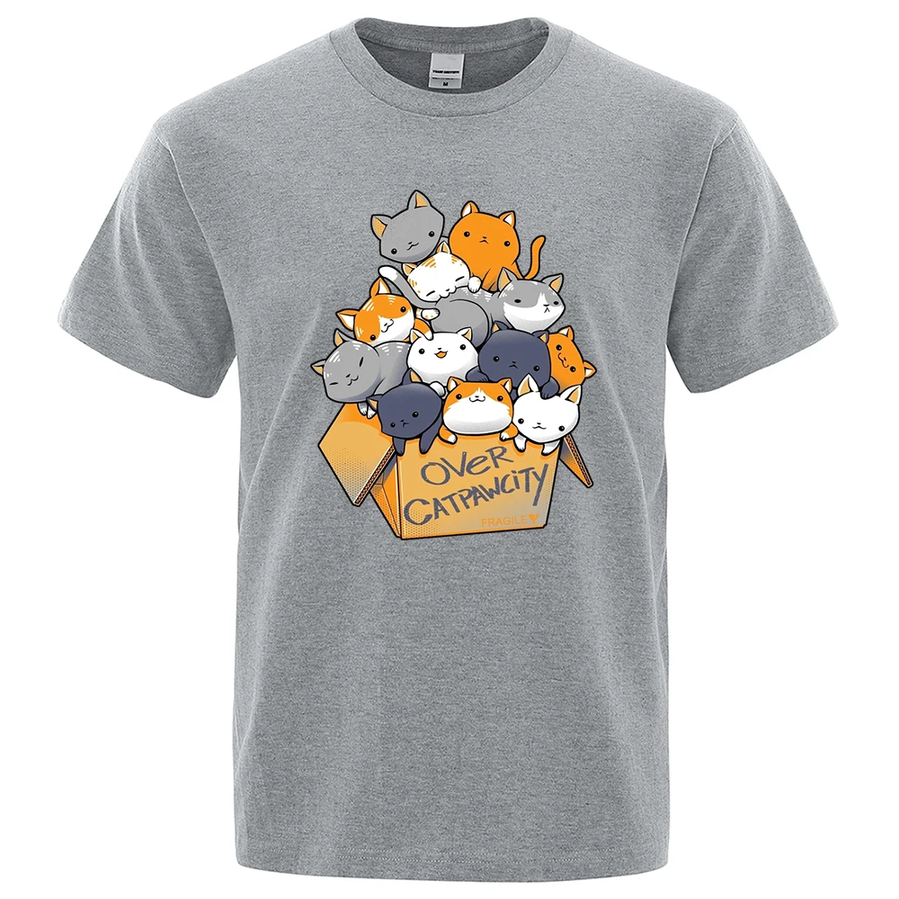 Sok macska gyűlt össze személyiségmintás ingekben, férfiaknak, túlméretezett pólók, izzadságruhák, nyári pamut póló, alkalmi, rövid ujjú