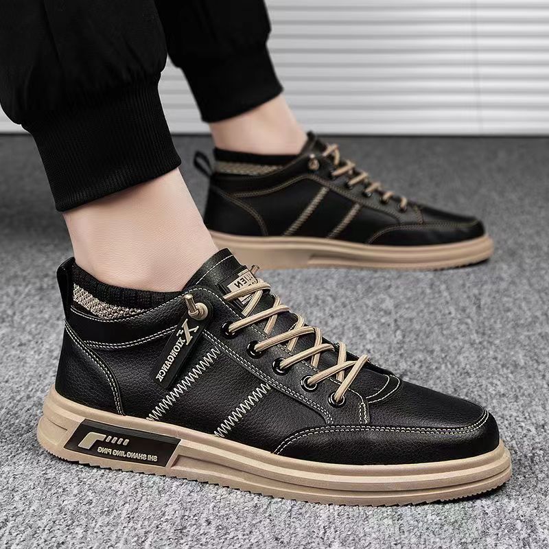 Men's Cricket Shoes 2023 Autumn New Super Fiber Leather Casual Outdoor Shoes Versatile British Socks and Mouth Shoes