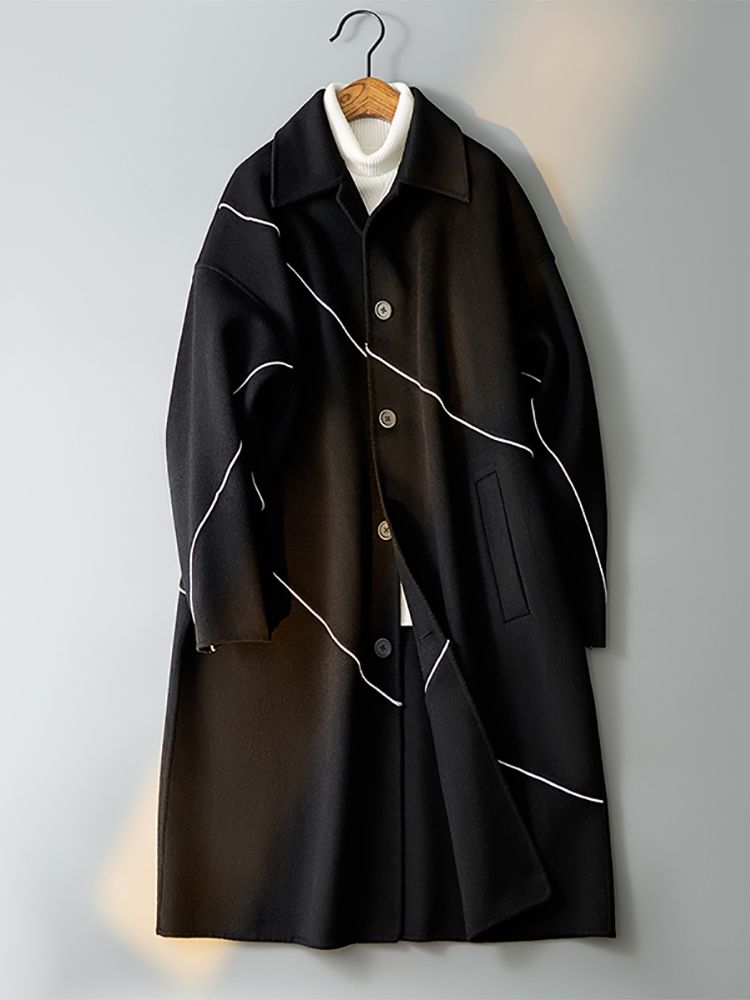 Men's Wool 2025 New Autumn High-End Simple Korean Style Mid-Length Trench Coat Double-Sided Woolen Jacket Trendy