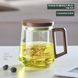 Modern Minimalist Double-Wall Glass Cup With Wooden Handle & Lid – Eco-Friendly Borosilicate Tea Mug (Heat-Resistant, Leak-Proof, Sweat-Free Design)