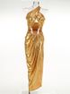 Női ruházat új stílusú arany szexi pántnélküli nyakpántos felső rakott, szabálytalan szoknya kétrészes láncos öltönyszoknya