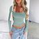 Női ruházat Slim Fit egyszínű U-nyakú hosszú ujjú felső